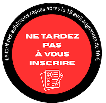 Attention : Le tarif des adhésions reçues après le 19 avril augmente de 10 €. Ne tardez pas !